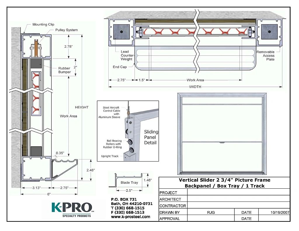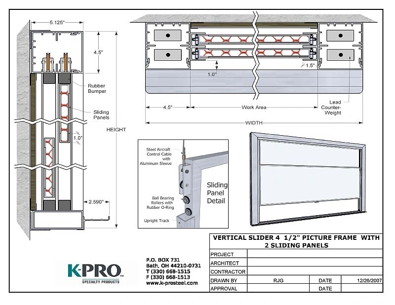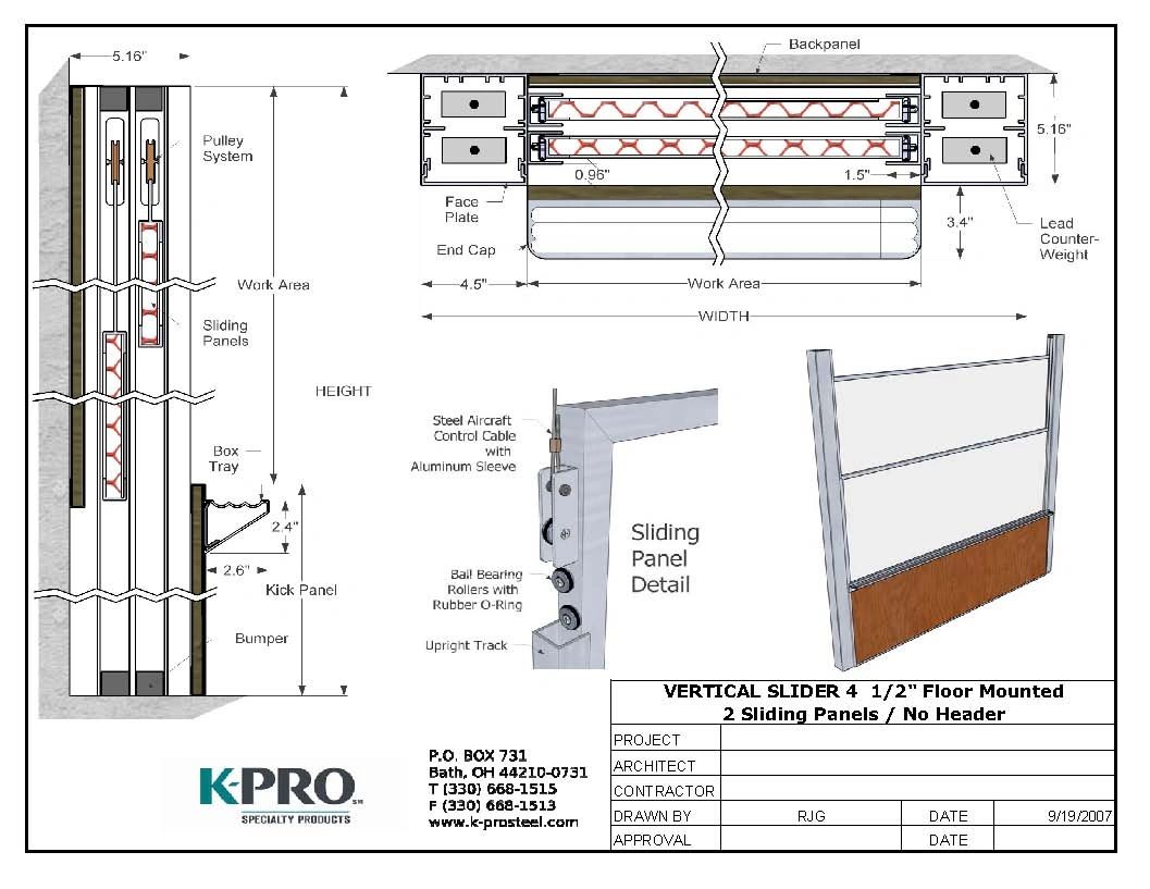 Sliding units are designed to maximize your workspace by adding multiple levels of working area ... custom built to your specifications. Sliding panels glide with ease on precise counter-weight & bearing/ track systems. Standard Vertical System consist of 4 1/2" thick
